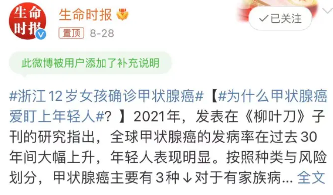 近日,#為什么甲狀腺癌愛(ài)盯上年輕人?# 的話(huà)題沖上熱搜,引發(fā)了大家廣泛關(guān)注。