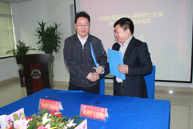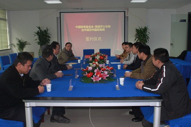 2013年12月7日上午,南通市伊士生物技術(shù)有限責任公司在伊士生物研究院會(huì )議室舉行了“中國禁毒基金會(huì )-南通伊士生物合作建設中國禁毒網(wǎng)簽約儀式”。中國禁毒基金會(huì )秘書(shū)長(cháng)李憲輝先生,江蘇省公安廳禁毒總隊副總隊長(cháng)陳紅淦先生,省公安廳和市公安局相關(guān)領(lǐng)導共7人出席了簽約儀式。