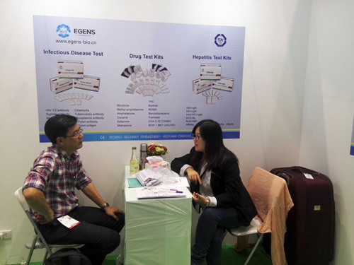 此次展會(huì )公司主要展示了自主研發(fā)的診斷試劑和分析儀。優(yōu)生系列,腫瘤標志物,傳染病系列,毒品系列還有 酶免系列。