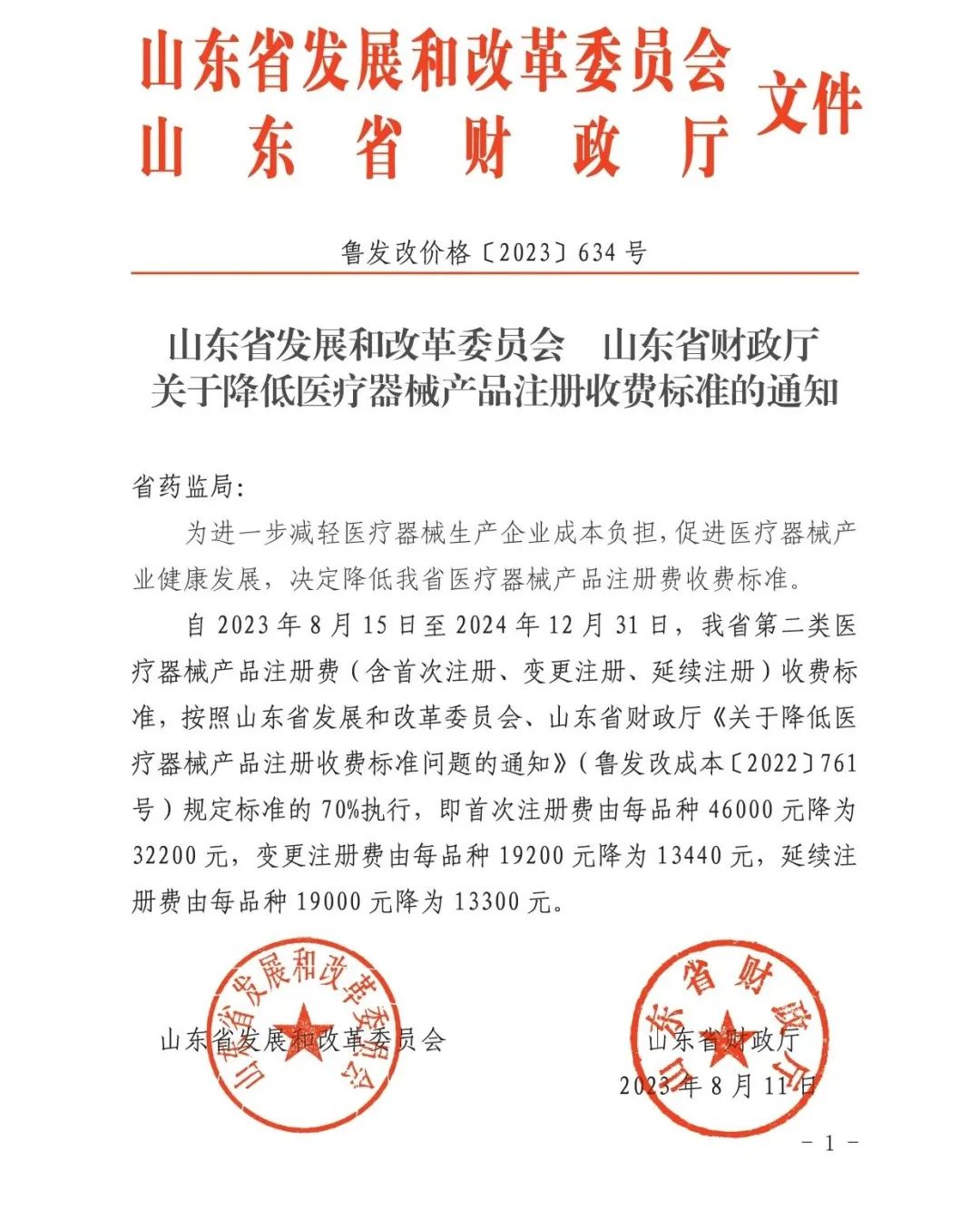 8月14日,山東省發(fā)展和改革委員會(huì )、山東省財政廳《關(guān)于降低醫療器械產(chǎn)品注冊收費標準的通知》: