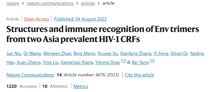 近日,上??萍即髮W(xué)免疫化學(xué)研究所楊貝課題組與中國疾病預防控制中心性病艾滋病預防控制中心團隊合作在國際學(xué)術(shù)期刊《自然通訊》(Nature Communications)上發(fā)表題為“Structures and immune recognition of Env trimers from two Asia prevalent HIV-1 CRFs”的研究論文,報道了我國HIV-1病毒的主流亞型(即流行重組亞型CRF01_AE和CRF07_BC)的Env蛋白結構與免疫識別特征,揭示了CRF01_AE亞型的Env蛋白在V1區域的獨有特征及其與該亞型的廣譜中和抗體逃逸能力之間的關(guān)系,并闡明了第一株分離自CRF01_AE感染個(gè)體的廣譜中和抗體的新型中和機制。該研究拓寬了對于HIV-1流行重組亞型的認識,為后續針對我國主流HIV-1亞型開(kāi)展免疫聚焦型疫苗設計和相關(guān)廣譜中和抗體的應用開(kāi)發(fā)提供了理論依據。